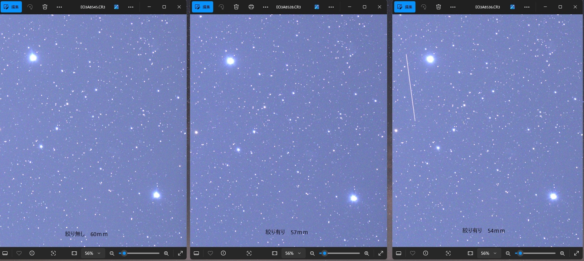 左より絞り無しの純正状態60mm・・・・F3.8ですが・・・